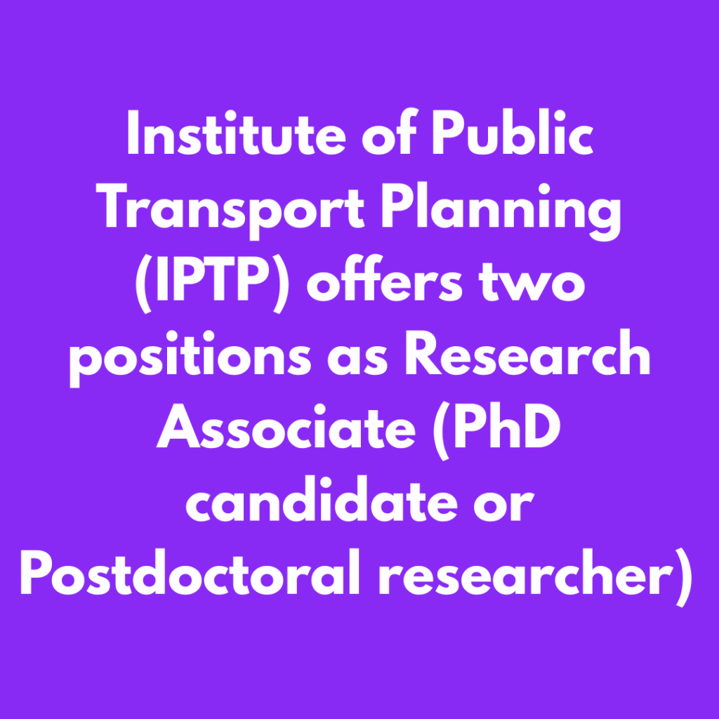 The Institute of Public Transport Planning (IPTP) offers two positions as Research Associate (PhD candidate or Postdoctoral researcher)