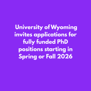 Read MoreUniversity of Wyoming invites applications for fully funded PhD positions starting in Spring or Fall 2026