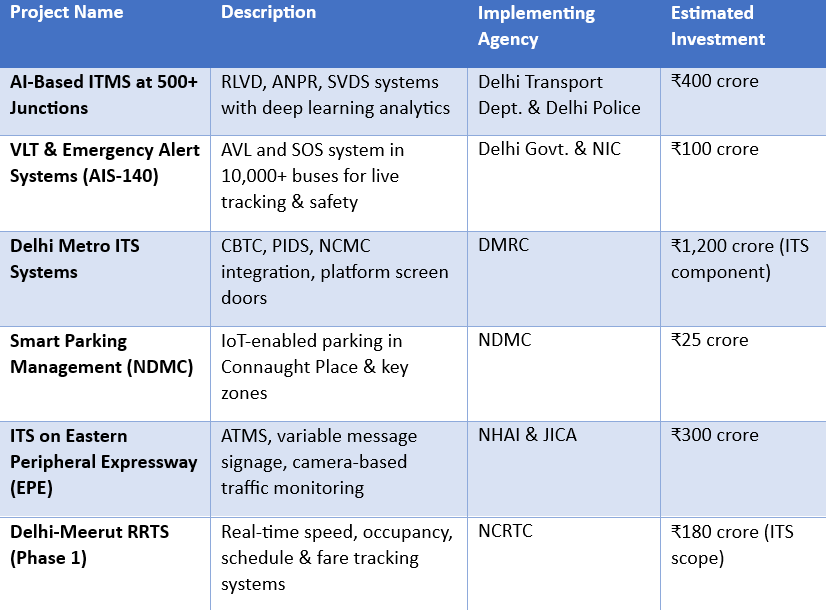 Maharashtra’s ITS landscape is marked by several high-impact projects led by MSRDC, MMRDA, Urban Local Bodies (ULBs), and Smart City SPVs. These projects address traffic congestion, safety, public transport modernization, and freight efficiency across the state.